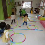 日中はお部屋ですべり台やトンネル、フラフープを使って遊びました(^_^)