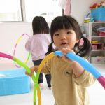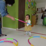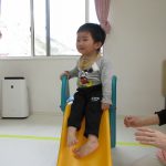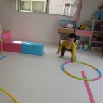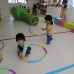 日中はお部屋ですべり台やトンネル、フラフープを使って遊びました(^_^)