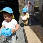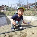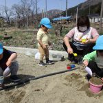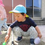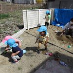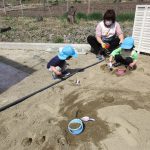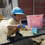 1歳児さんは園庭で遊び、2歳児さんは砂遊びをしました!!