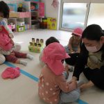 それを見ていた1歳児さんも興味を持ち、
