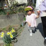 近所の桜が咲いたので、1、2歳児さんみんなでお花見に行きました。