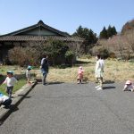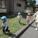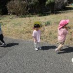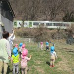 お花見の後は、電車の見える空き地までお散歩をしました。