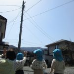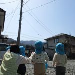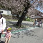 近所の桜が咲いたので、1、2歳児さんみんなでお花見に行きました。