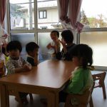 今日は朝から1歳児さん、2歳児さん一緒のお部屋で過ごしました。