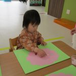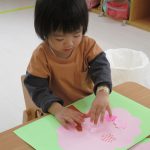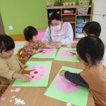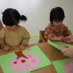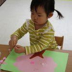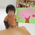 1歳児さんは戸外遊びの前に4月の製作をしました!!