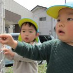 1歳児さんもお花が咲いているのに気が付き、
