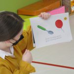 色のお歌に合わせて、同じ色の物をお部屋の中から探す