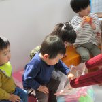 1歳児さんは言った気持ちになって袋の中を覗いていました(^o^)