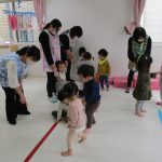あっちゃん先生が鬼になり、みんなで少しずつ近付いて行くのですが