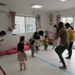 まず始めに「Hello♫」のお歌に合わせて体を動かしました!!
