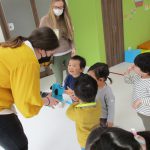 2歳児さんはちゃんと声に出して「ハロー」が言えましたが