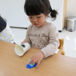 2歳児さんは、製作で作ったこいのぼりをブンブン振って遊んでいましたよ。