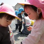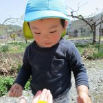 お隣さんの犬を見に行ったり、タンポポを見つけたり、アリさんを捕まえたり。