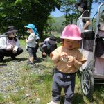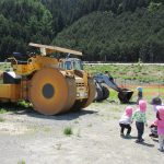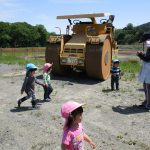 ロードローラーやショベルカーなど、工事車両が停まっていて男の子達は大興奮!!