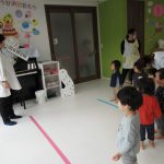 講師の先生の弾く鍵盤ハーモニカに合わせて歩いたり止まったり、