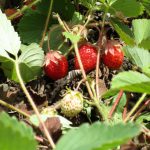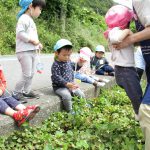 園庭で遊んでいると、隣りのお家の方に畑にいちごが実っているから