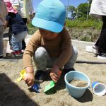 砂遊び用玩具を使ってケーキやアイスクリームを作ったり