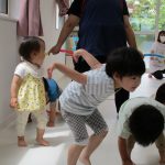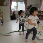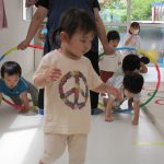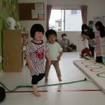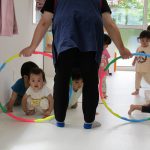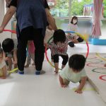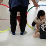 フラフープのトンネルをくぐったり、平均台を乗り越えたり。