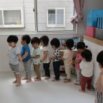 2歳児さんを先頭に、みんなで並んでいる姿もかわいいですね(*^^*)