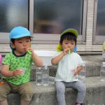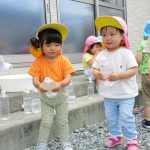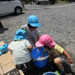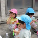 子ども達は水遊びやしゃぼん玉で遊びました(*^▽^*)