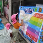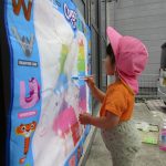水お絵描きのシートを出すと興味を持ち、お絵描きしたり、