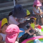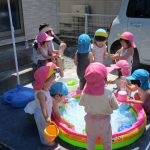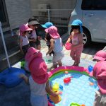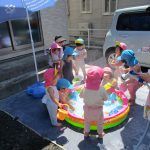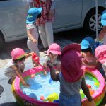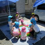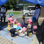 今日は気温も上がり、お天気も良かったので水遊びをしました!!
