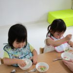 先月の誕生会にお休みした6月生まれの2歳児の女の子も