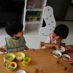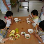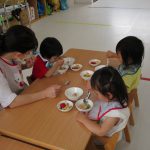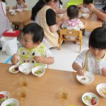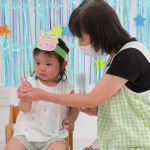 先月の誕生会にお休みした6月生まれの2歳児の女の子も