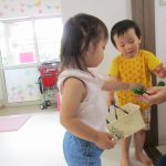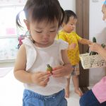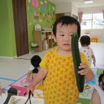 朝、2歳児さんが代表で野菜を収穫してくれました!!