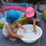 1・2歳児さんはプール遊びをしました!!