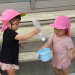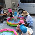 1歳児さんのお友達は最初のうちは水を嫌がってか