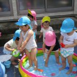 0歳児さんのお友達はお昼寝中で残念ながらプール遊びには