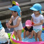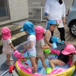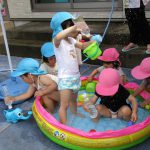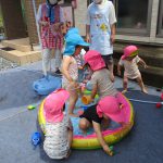 ペットボトルの水鉄砲で先生やお友達に水を掛けたりして