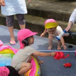 じょうろやペットボトル、バケツやお魚の玩具で遊びました!!