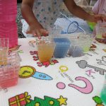 色水が並んでいて、お店屋さんみたいでとても楽しそうでした(≧▽≦)