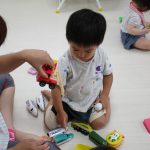 遊びながらアンパンマンのCDを掛けると、数人のお友達が