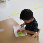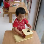 今日はお部屋で過ごし、モンテッソーリ教具を使って
