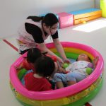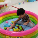ボールプールでは仰向けに寝転んでボールを掛けてもらうのが