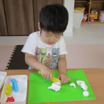 「粘土遊びをした~い」という2歳児さんのリクエストで