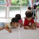 0歳児さんのお部屋を借りて粘土遊びをしました!!