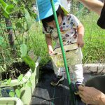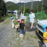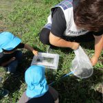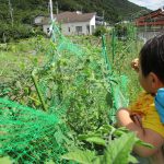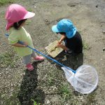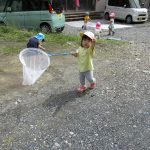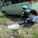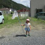 虫取り網を持って探しに行き、隣りのお家のおじさんも一緒に