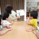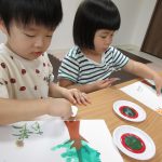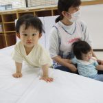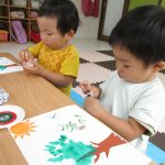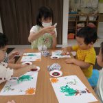 2歳児さんは0歳児さんのお部屋を借りて製作をしました!!