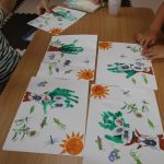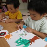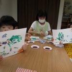 その後でみんながお外で見た虫やお花の絵をのりを使って好きなところに