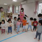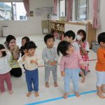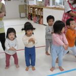 「幸せなら手をたたこう」を歌い、手をたたいたり、足踏みしたり、