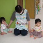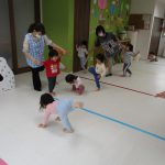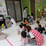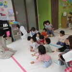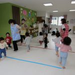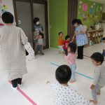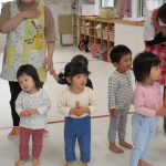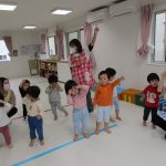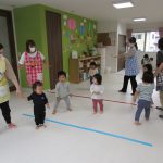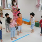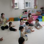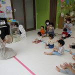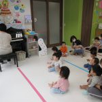 手遊び歌を講師の先生がピアノで伴奏してくれて、みんなで歌いながら