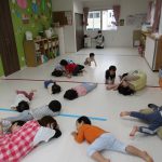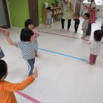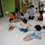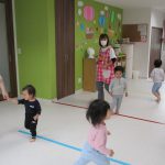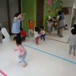今日のリトミック教室もたくさん体を動かしたり、音楽に触れたりして