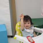 それを見ていた0歳児さん、真似っこをして人差し指を立てて、