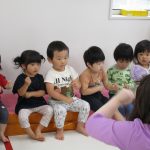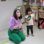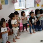 朝の会でお名前を呼ばれたら「ハロー」とご挨拶の練習をしました(^o^)