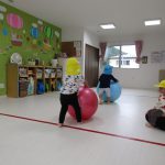 大玉転がしは初めてなので、まずは大玉に慣れてもらおうと
