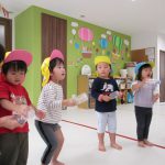 1・2歳児さんは明日の運動会ごっこに向けて競技の練習をしました!!